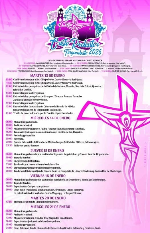 - Enero 14. Celebración en honor al Cristo redentor